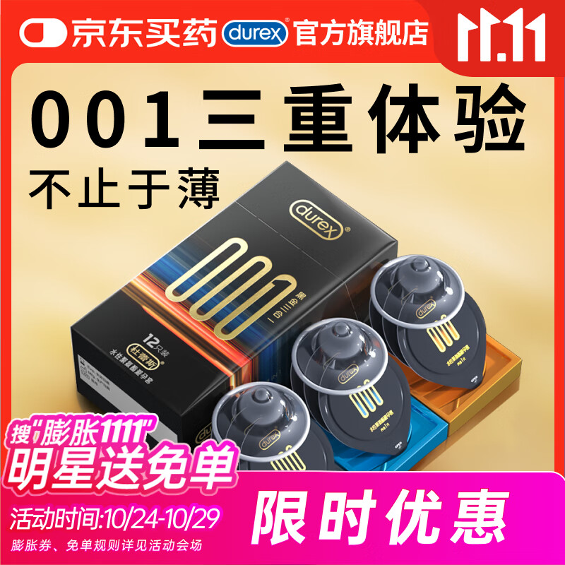 杜蕾斯(durex)避孕套安全套超薄001黑金三合一12只套套成人用品情趣用品