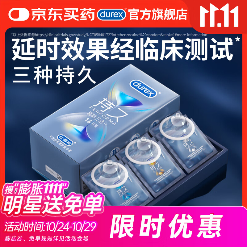 杜蕾斯(durex)延时避孕套延时男专用持久延时三合一16只安全套超薄防早泄敏感套