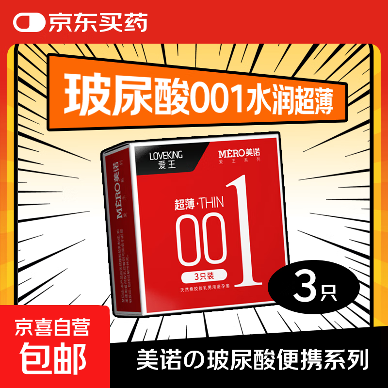 延时避孕套超薄001安全套玻尿酸持久套套成人用品情趣性用品byt 美诺001便携装(共3只)