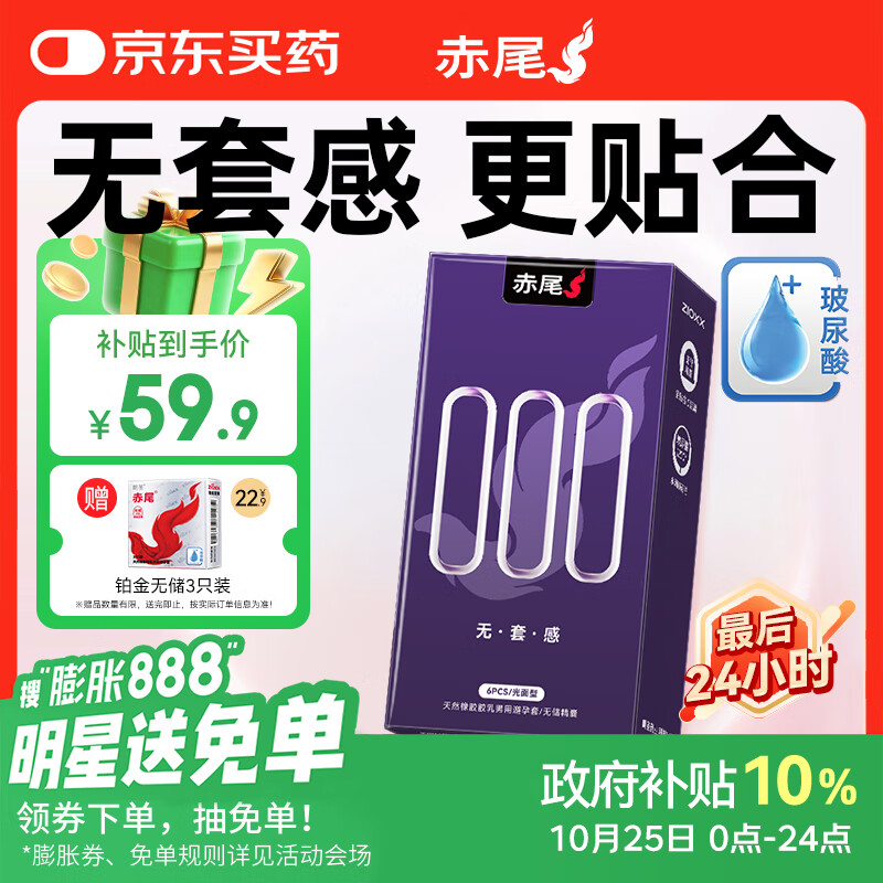 赤尾000超薄避孕套9只含赠无储避孕套安全套玻尿酸避孕套赤尾000