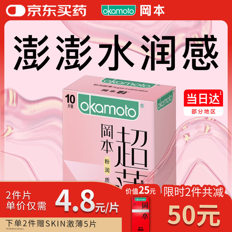 冈本避孕套安全套 超薄粉润10片男女用套套成人计生情趣用品 okamoto