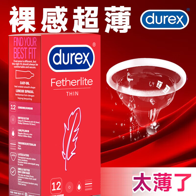 杜蕾斯(durex)超薄避孕套12只 润滑套套中号成人情趣计生用品安全套原装进口