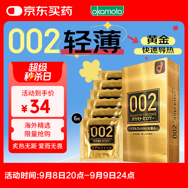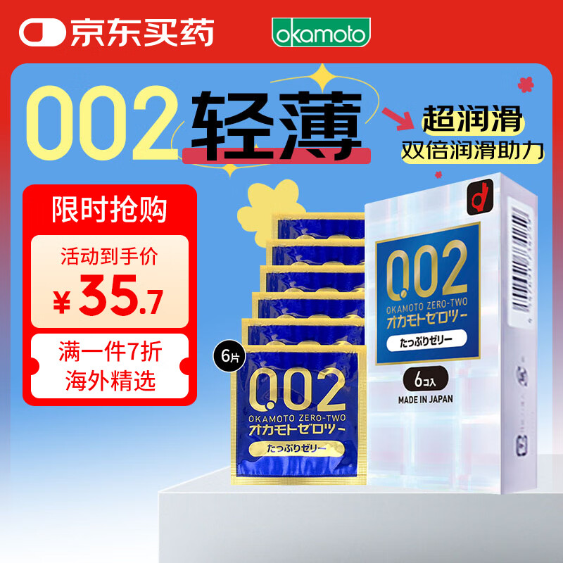 冈本 002避孕套安全套超薄双倍润滑 6只套套成人情趣计生用品日本进口