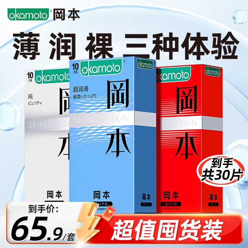 冈本超薄超润滑 安全套套装 计生成人用品进口超薄套套 避孕套 【超薄14只+纯薄10只+超润滑10只】