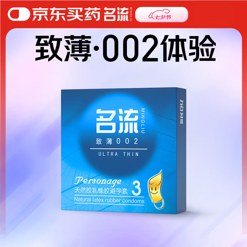 名流避孕套超薄致薄002安全套成人情趣性用品男用光面超薄中号3只装