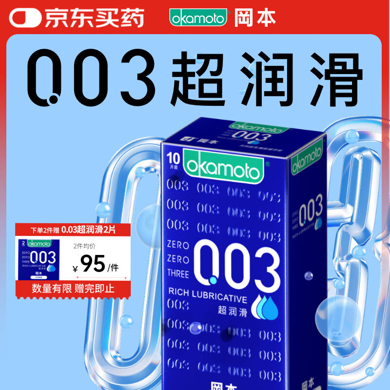 冈本003超润滑超薄避孕套0.01隐形无套裸入男女性水润快潮秒喷安全套 003贴身超滑6 裸感避孕套成人情趣计生用品