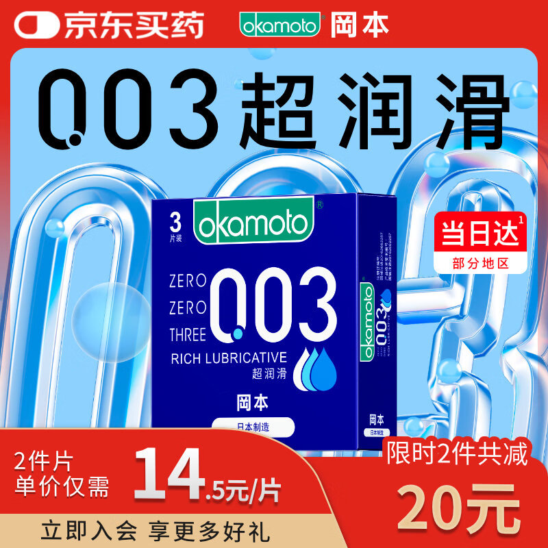 冈本 避孕套安全套 003超润滑2片 套套隐形裸入超薄计生成人情趣用品