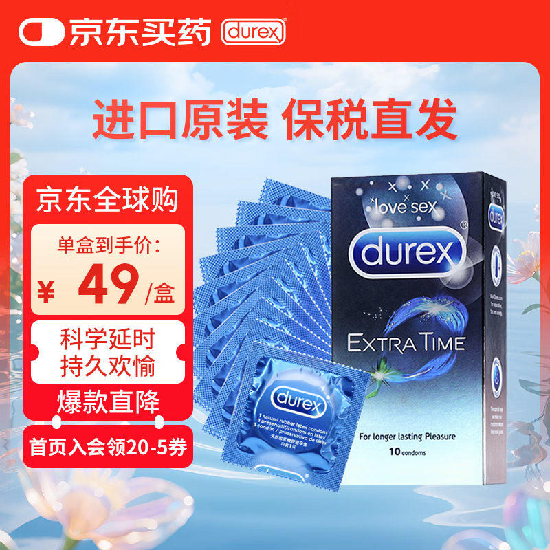 杜蕾斯(durex)延时避孕套 持久安全套 原装进口男用润滑套套情趣计生用品10只装