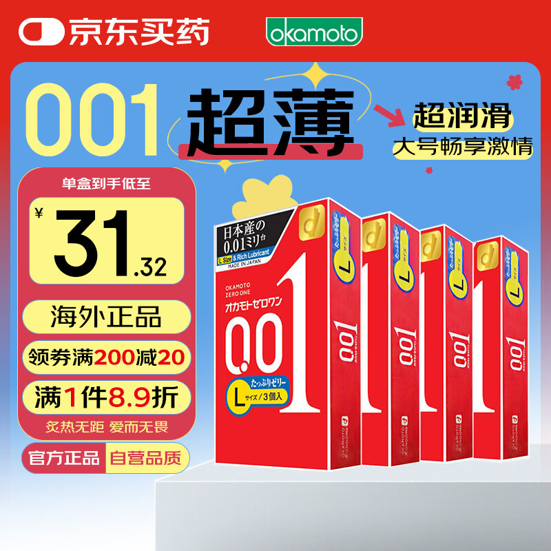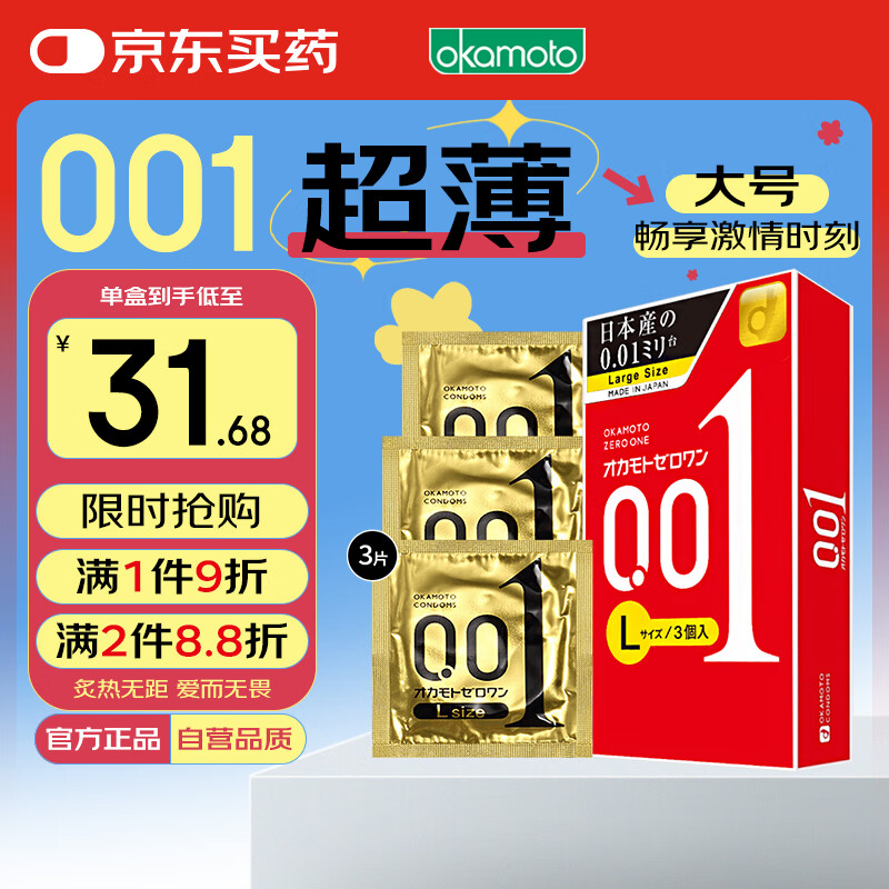 冈本001避孕套安全套超薄大号L码3只男女用套套成人情趣计生用品进口