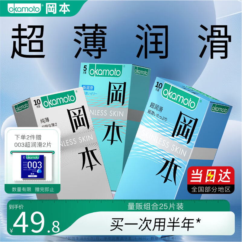 冈本001 避孕套超薄0.01隐形裸入 持久延时安全套 男用套套情趣大颗粒 囤货25只【纯10+超润滑10+新润滑5】