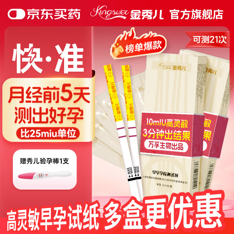 金秀儿早孕试纸20条 验孕棒早早孕 验孕测孕试纸 高精度hcg翻倍检测