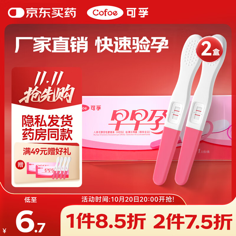 可孚 验孕棒2支装早早孕验孕试纸高精准度测怀孕试纸排卵验孕笔测孕棒