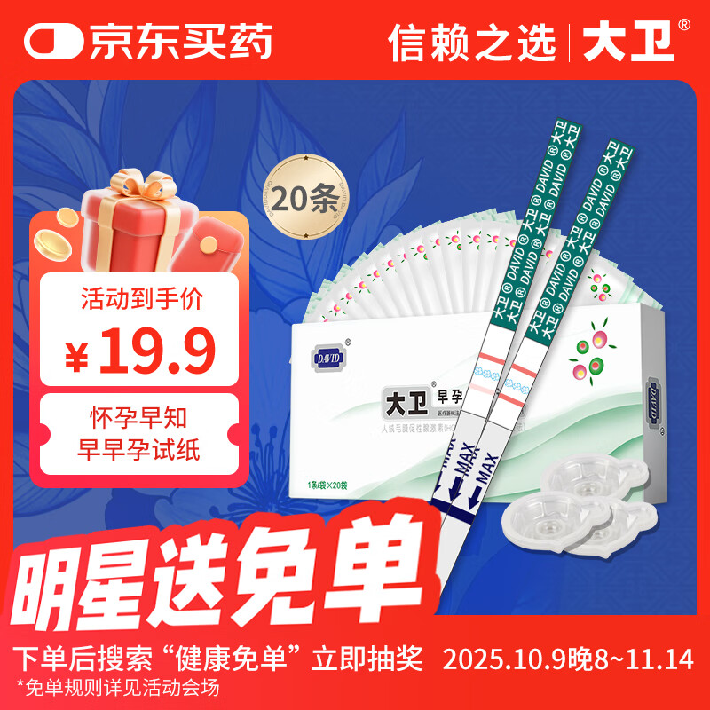大卫验孕棒 早孕试纸20条送尿杯 早早孕验孕试纸试条(HCG)检测试纸