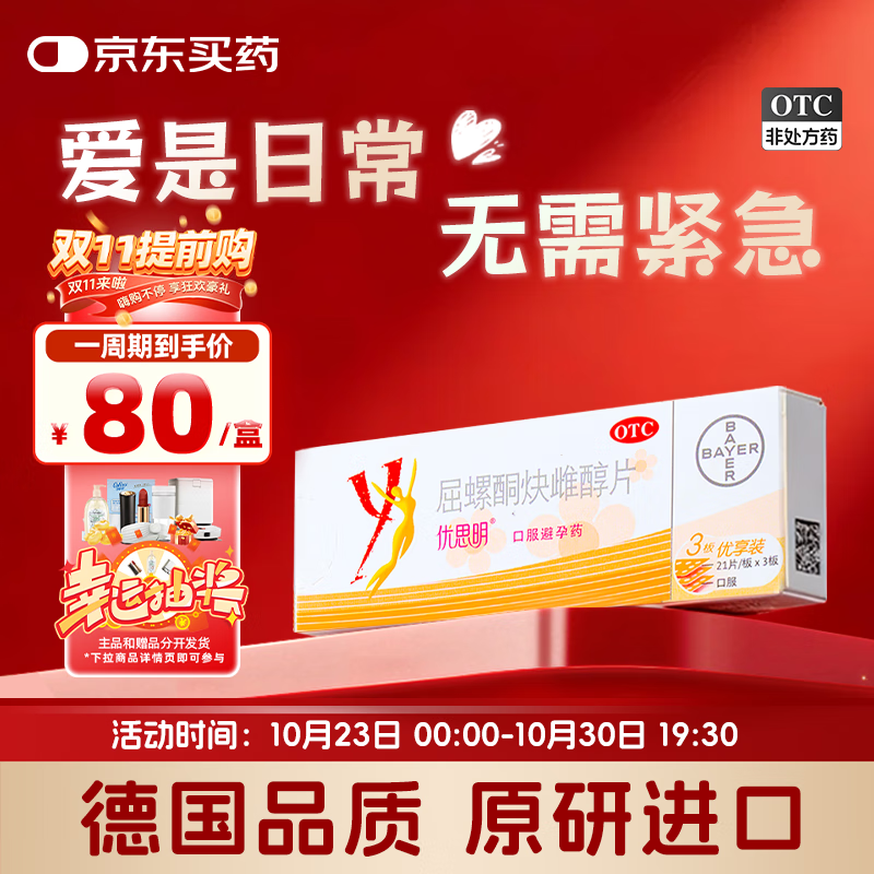 【原研药】拜耳 优思明短效避孕药屈螺酮炔雌醇片 21片*3板/盒 非紧急避孕药 女用口服避孕药